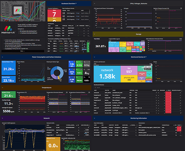 With MetricsHub®, gain real-time visibility into hardware health, system performance, and sustainability metrics across servers, storage, and networks—helping you prevent failures, optimize costs, and run greener data centers.